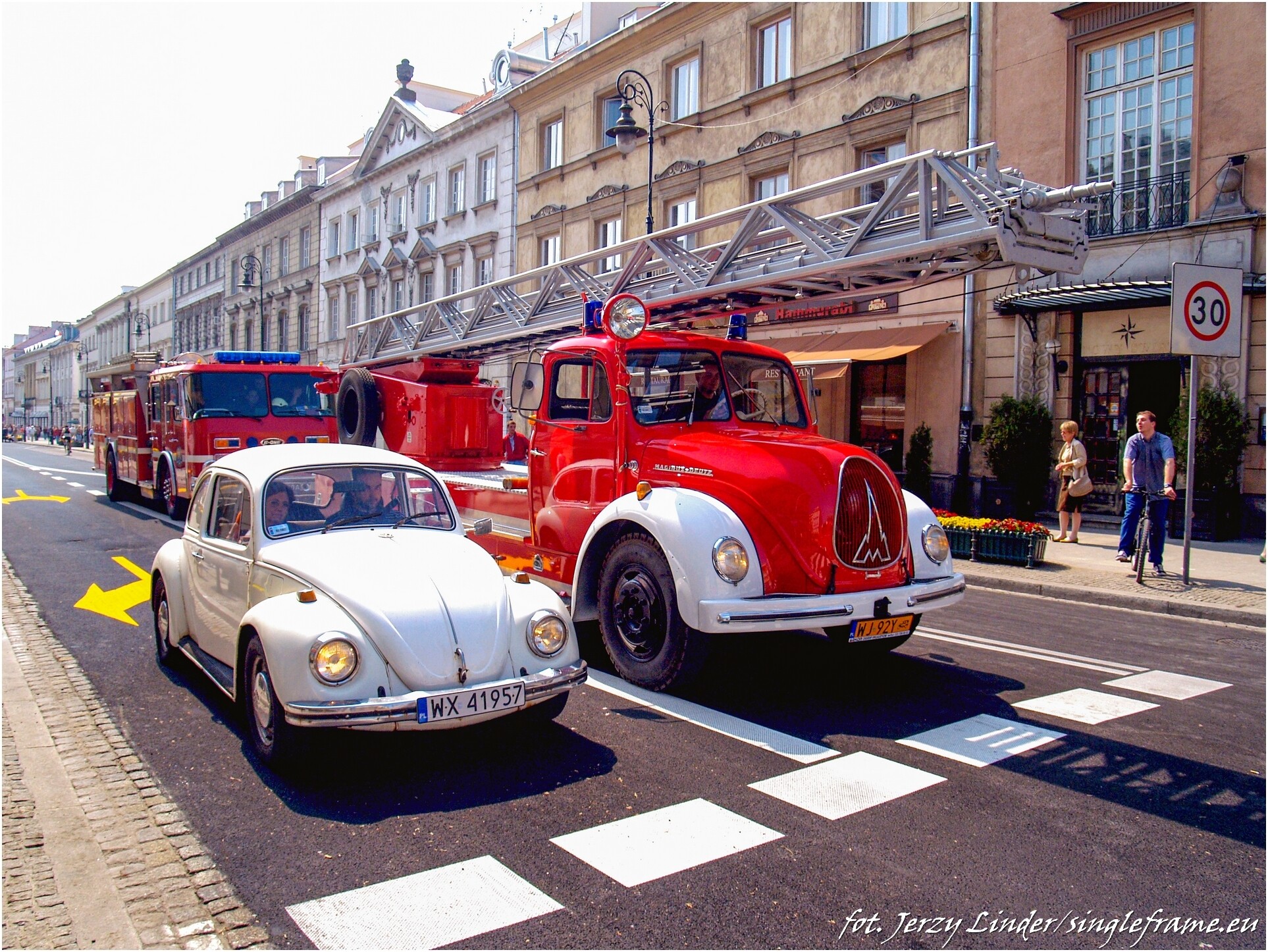 Pamiętacie film „Ci wspaniali mężczyźni na swych szalejących gruchotach”? Obok Bourvila, Mirelle Darc, Susan Hempshire i innych gwiazd kina najważniejsze role zagrały w nim niesamowite, trzęsące się, warczące i parskające oliwą pojazdy. Stare graty do dziś budzą nie tylko zainteresowanie i uśmiech, ale także fantastycznie pozują do zdjęć. W tej galerii szczególnie efektownie prezentują się lśniące mosiądzami pojazdy pożarnicze (także konne sikawki), które spotkałem kilka lat temu na zlocie w czeskich Litomierzycach nad Łabą, a potem na rajdzie strażackich weteranów w granicznym Cieszynie.